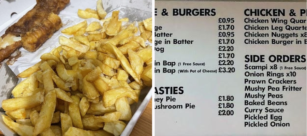 We had Cod, Chips, Sausage in Batter and Curry Sauce and finished the lot. For starters the price is very good £2 for chips and it was a massive portion, I’ve paid a lot more for large at other places and not got as many. The chips were nice, I won’t lie I’ve had better but they were up there. The sausage in batter was spot on just how I like and good quality. The cod did taste nice than it looked, the batter wasn’t as light and fluffy as some others but still nice and the cod itself was nice and at that price £3.80 for a cod I was impressed. Lastly the curry sauce, the flavour was bang on the money but as someone mentioned it could be a touch thicker, but being thinner it did seem to last longer and I would definitely have it again. Both the staff, man and woman were very friendly. (I’ve posted a price list to help others)